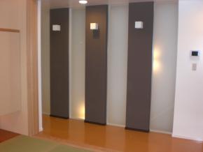 コンクリートの曲面の壁は和室の入口です。