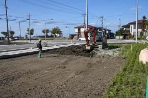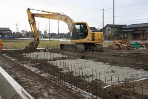 1F床下の埋め戻し、地盤改良工事を行いました。