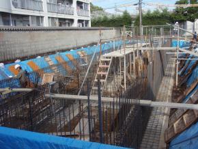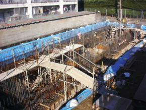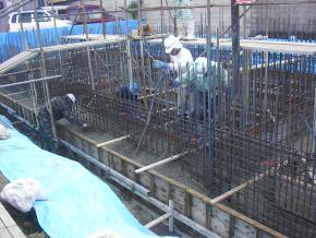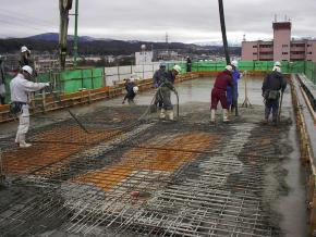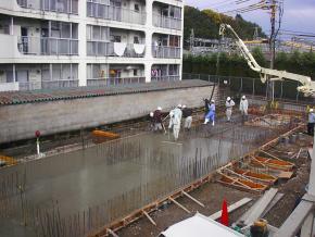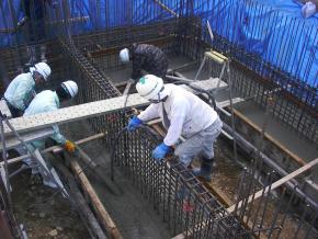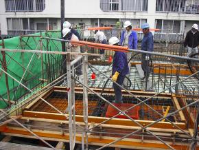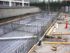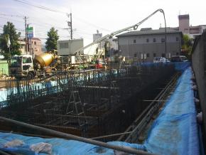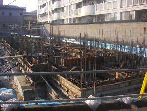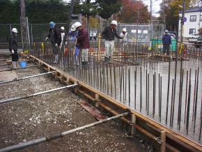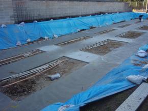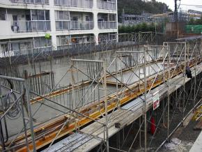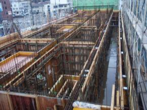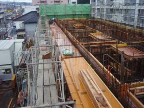 スラブの脱型枠が完了次第、墨出しをして参ります。