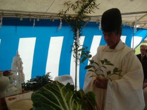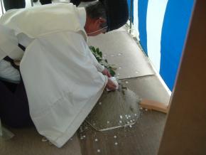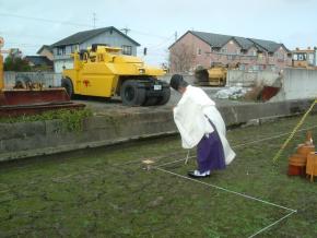 地鎮祭吉日に11:00〜地鎮祭を行いました。天気予報では雨でしたが式の間は太陽も顔を覗かせていました。