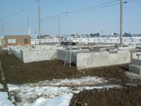 基礎コンクリートの型枠を脱型し、防湿コンクリートを打設しました。