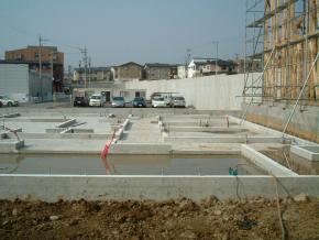 基礎の立ち上がりのコンクリート打設が完了しました。養生期間をおいて4月3日に建前予定です。