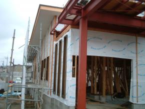 外壁のサイディング貼り中です。