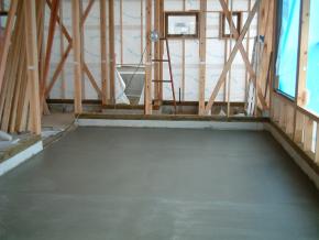 待合室の床暖房の上にシンダーコンクリートを打設しました。