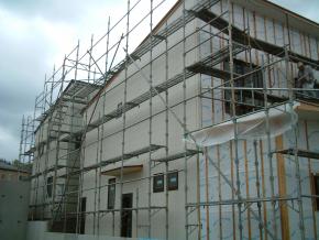 外部はサイディング貼り中です。