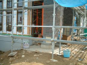 現在、サッシ工事中です。
