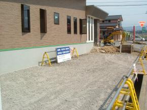 外構工事も内部と並行して行っております。現在、駐車場の路盤工事を行っております。