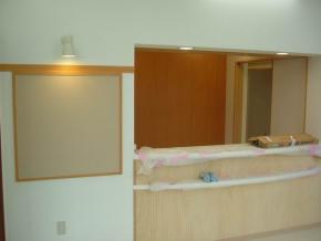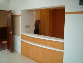 受付廻りの腰板の塗装工事も完了しました。