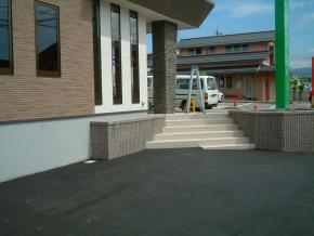 外部の階段のタイル貼り工事、アスファルト工事完了しました。