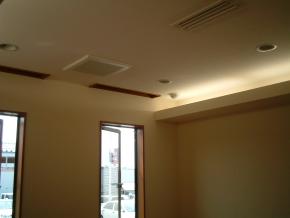 1Fエステルームの間接照明部分のボード貼りが完了しました。