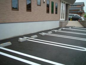 駐車場のライン引き・車止め工事も完了しました。