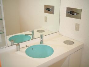 パウダールームの洗面器取付完了しました。