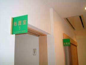 各室の室名札取付も完了しました。サイン関係は黄緑をベースにデザインされております。