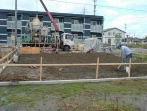 この写真と駐車スペースのコンクリートを流し込んでいます。