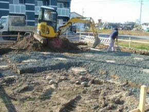 地盤改良も無事終わり、いよいよ基礎工事が始まります。まずはデコボコしている部分をきれいに整地します。
