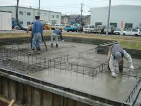 厳しい検査をクリアした基礎にいよいよコンクリートが流されていきます。ベタ基礎の心臓部「耐圧盤」と呼ばれるコンクリートです。