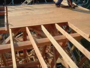 屋根の骨組みにしっかりと下地を打ち付けて行きます。