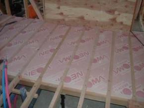 床の下にはピッチリと断熱材を敷き詰めます。これで外の冷気をシャットアウト!