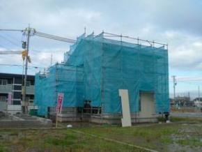 外からは外観が青色シートで隠れているので、なかなか外観をお見せすることができず・・・
