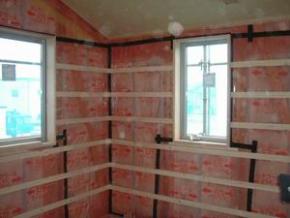 壁にもピッチリと断熱材。窓も取り付けられました。