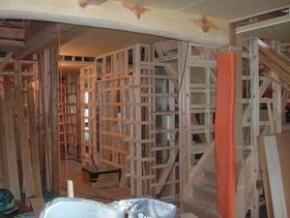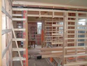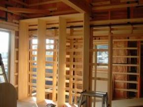 壁には、ボードを貼るための下地が横並びに貼られています。