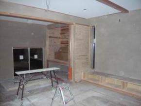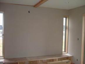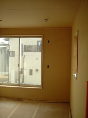 下塗りの段階では薄暗く見えますね・・・仕上げは白い壁になります。