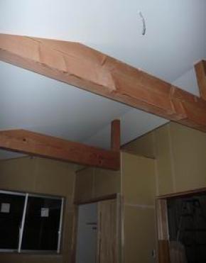 しかし、このお家のシンボルの大きな梁はしっかりと見えています。天井が貼られても存在感がありますねぇ。
