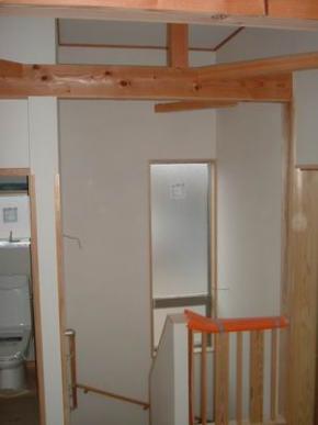 ここは居住スペースではないので珪藻土クロスと言うクロスを貼っています。