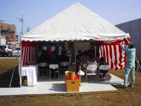 切麻散米を行っております。建物の四方をお祓いしていただいております。
