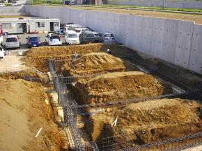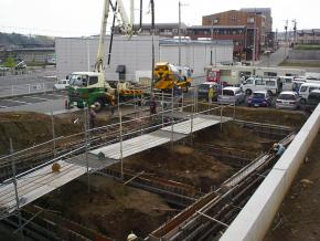 基礎の型枠を脱型しました。今後は埋戻し・埋設配管工事に着手し6月5日頃に鉄骨建方の予定です。