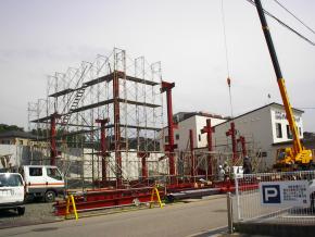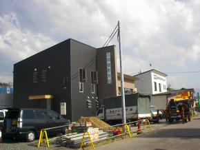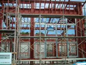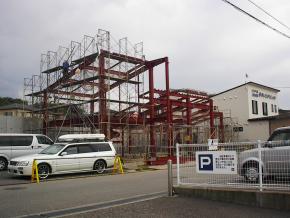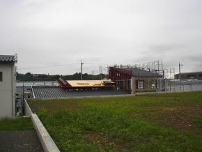 本日、鉄骨建方を行っております。天候にも恵まれ順調に進んでおります。