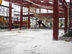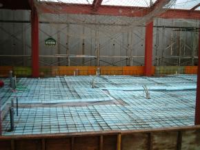 待合室の床暖房の配管が完了し、コンクリートを打設しました。