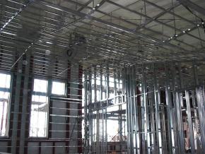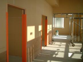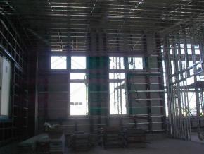 リハビリ室の天井の下地工事も完了しました。天井が高い開放感のあるリハビリ室になると思います。
