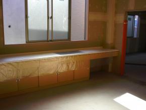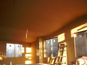 現在、内部クロス貼りがほぼ完了し、床貼り工事中です。