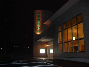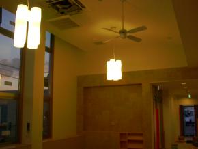 外壁の医院名のサインを夜はアッパーライトで照らしております。