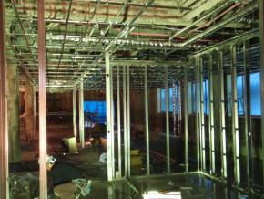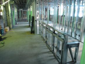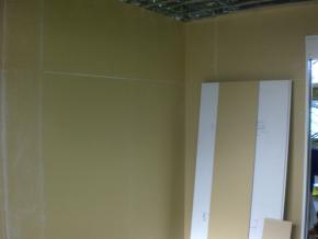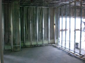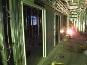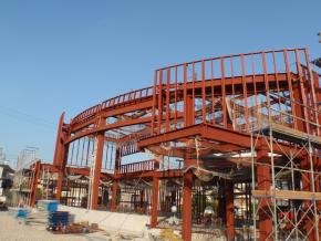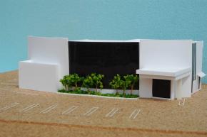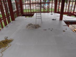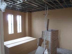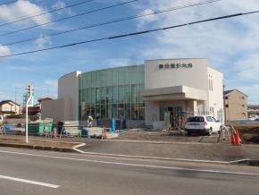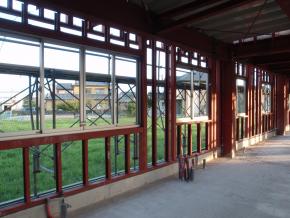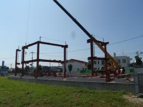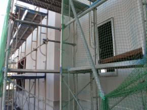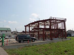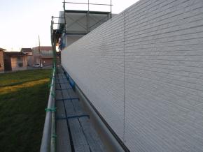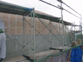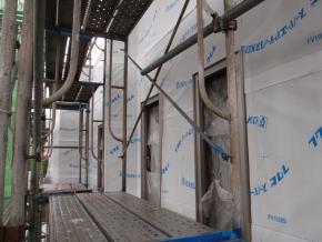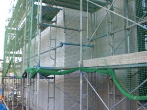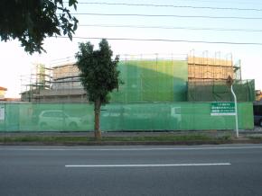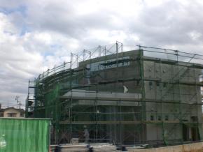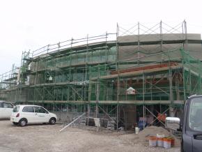 建物正面です。R部分の外壁のデラクリートボード貼り中です。