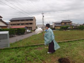 蒸し暑い日でしたが雨も降らず地鎮祭を執り行うことが出来ました。
