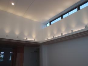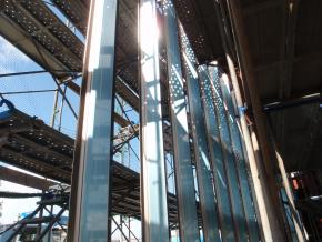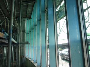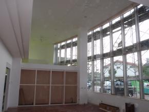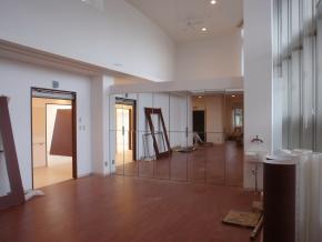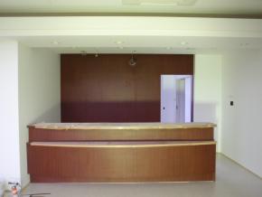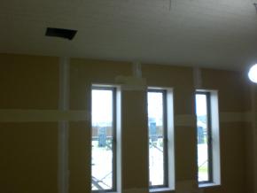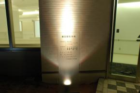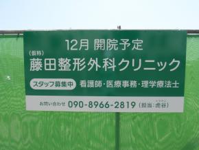 外壁サインを実物大の紙で大きさや取付位置を確認して頂きました。