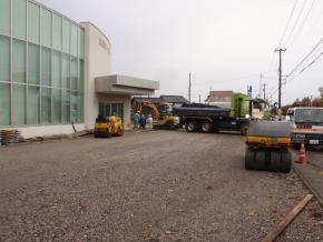 外部路盤工事が完了しアスファルト舗装に着手しました。