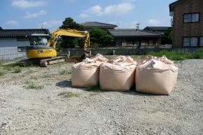 表層地盤改良工事中です。