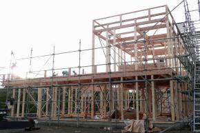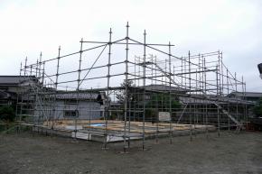 土台伏せも終わり建方に先立ち足場を組立ました。