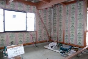 壁断熱工事中です。