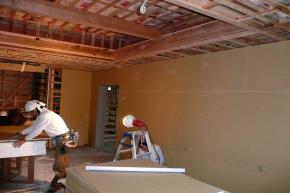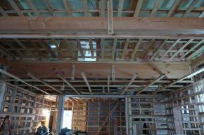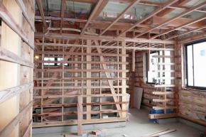 内部壁・天井下地工事中です。