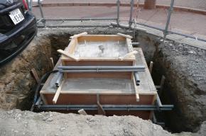 看板の基礎工事を行いました。