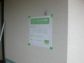 診療案内サインを実物大の紙で大きさ・取付位置を確認して頂きました。