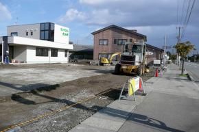 表層地盤改良工事に着手しました。