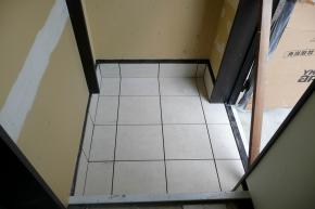 通用口の床タイル貼りを行いました。