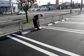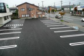 駐車場のライン引きが完了しました。