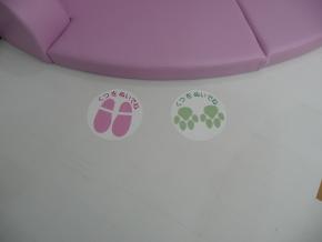 キッズコーナーのマット手前の床にサインを取り付けました。