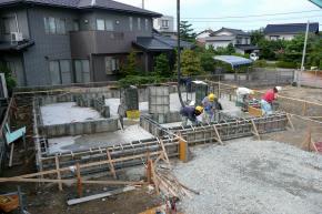 基礎の立ち上がり部分のコンクリートを打設しました。